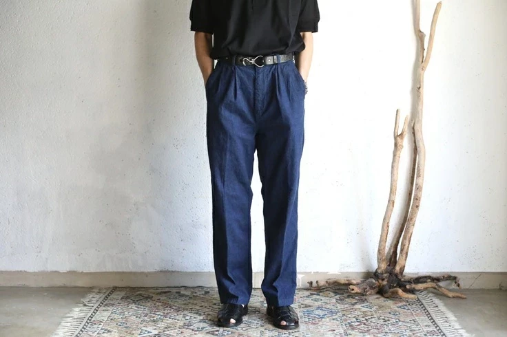 orSlow 雙摺丹寧長褲,以輕磅日產 8 盎司丹寧製作,經過水洗的布面仍保有濃紺色澤,著用柔順舒適,搭載 UNIVERSAL 黃銅拉鍊,更是增添穿脫便利性。剪裁上交錯運用洋裁手法,細膩呈現各處細部,如腰身折線輪廓,加以錐狀寬鬆版型,垂墜感俐落自然,帶來迥異傳統五口袋牛仔褲的穿搭體驗。